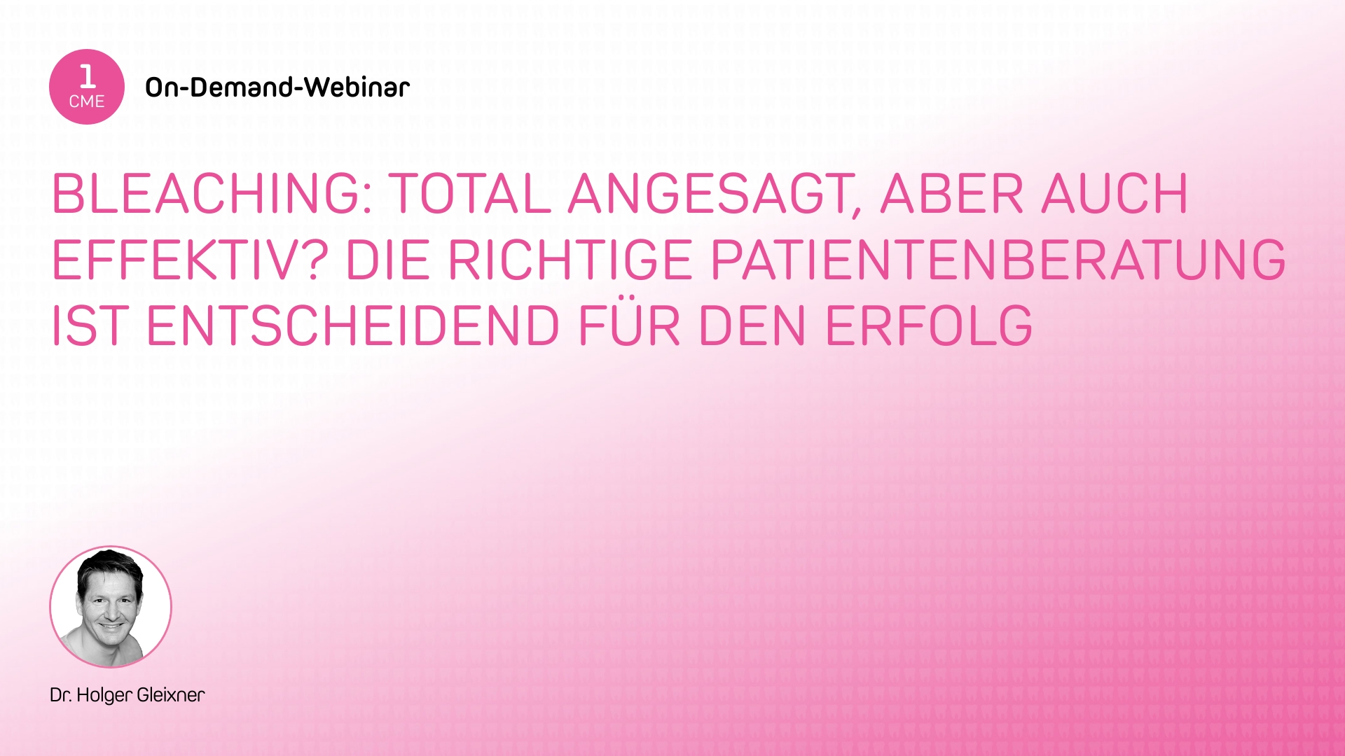 Hinweis: Alle interessierten Teilnehmenden erhalten nach dem Webinar ein kostenloses Bleaching Kit. Die URL zur Anforderung dafür wird im Webinar bekannt gegeben.