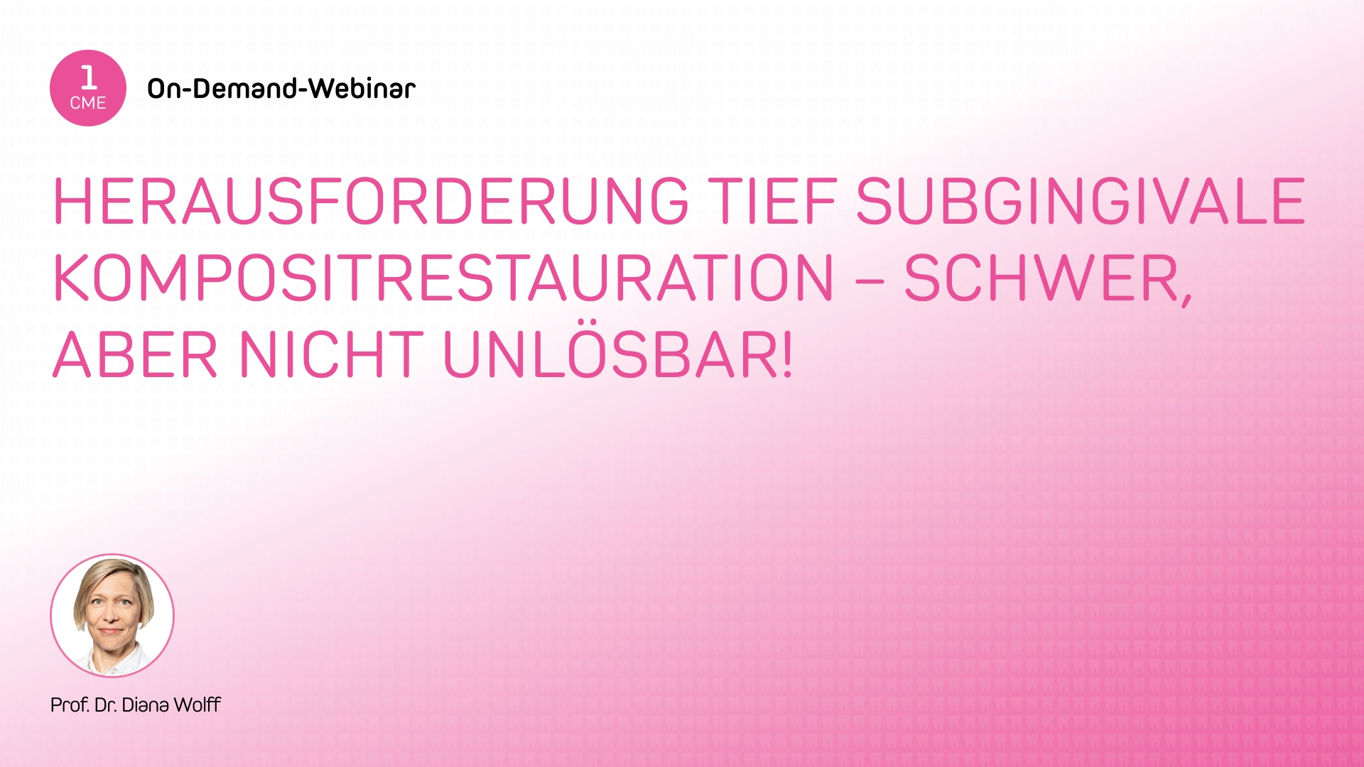 Zur Beantwortung dieser Fragen behandelt das Webinar folgende Themen: Entscheidungsfindung bei der Versorgung tief subgingivaler Kavitäten, Tipps und Tricks zu Trockenlegung, Blutungs- und Gewebemanagement, Matrizentechniken, die Anwendung der Kastenelevation zum Anheben tief subgingivaler Kavitätenränder vor Weiterversorgung, beispielsweise mit indirekten Restaurationen, Herstellung suffizienter Approximalkontakte, Ausarbeitung schwer zugänglicher Areale und effiziente Politur. Anhand zahlreicher klinischer Fallserien werden Hilfestellungen für den Praxisalltag gegeben und die aktuelle Evidenzlage erläutert.